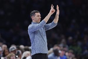 体育资讯4月8日讯 雷霆客场再战湖人,赛前主教练戴格诺特接受采访。